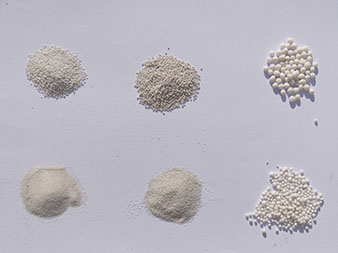 Spheroidal granules composed of expanded glass used as a lightened filler. Products with recycled glass, the granules are divided by size into six different groups with average diameter ranging from 0.1 to 8 mm. Despite the extreme lightness, the granules have good compressive strength, resistance to heat and chemicals, excellent sound and thermal insulation properties. When used in plasters, greater strength of the layers and minimal cracking is achieved. The spheroidal granules are classified A1 for flame behavior and are UV resistance. They do not release VOC and can be added to synthetic resins. They find application as filler for mortar, plasters, adhesives and building panels. They are also used for the construction of insulating walls, flooring and as sound-absorbing material.